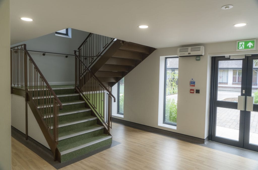 This principally included the insertion of a new floor in the main hall to provide additional class bases, an ground floor extension to provide a fully fitted commercial style kitchen and an additional storey above the northern wing to provide further additional therapy rooms and class bases.